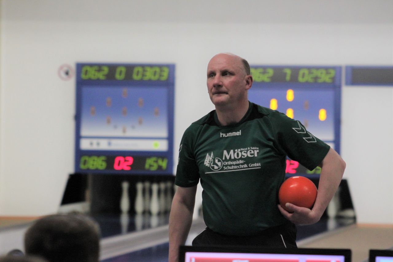 Für die 2. Bundesliga Männer standen die Aspiranten SKC Hugsweier 67 aus Baden, SF Sembach aus Rheinhessen-Pfalz sowie aus Thüringen/Bayern KSC Mechterstädt und SV 08 Geraberg in den Startlöchern, um drei Aufstiegsplätze zu belegen. Eine klare Führungsposition kristallisierte sich anfangs noch nicht heraus, da Geraberg zwar vorlegte (1877), aber Hugsweier (1830), Sembach (1797) und Mechterstädt (1772) auf Sichtkontakt blieben. Ohne größere Ausreißer nach oben kamen auch die Mittelpaarungen aus. Eine leichte Tendenz zum Nachteil des Klassenprimus Mechterstädt (1766/3538) zeichnete sich zwar ab, aber ob die Distanzen von 70 Punkten auf Sembach (1811/3608) und 121 auf Hugsweier (1829/3659) ausreicht, sollte sich noch zeigen. Mit Unterstützung seines Fanblocks "bleibt noch einer über, fahr'n wir nochmal drüber" bewahrte sich Geraberg (1808/3685) seinen Vorteil. Im Schlussakt kam nochmal richtig Bewegung ins Spiel. Während Sembach sich anschickte, verlorenen Boden auszugleichen, legte Mechterstädt seinerseits einen Zahn zu, so dass sich diese Kontrahenten gegenseitig die rote Laterne hin und her schoben. Als aber Hugsweier ein paar Schwächen offenbarte, wurden die Karten neu gemischt. Schlussendlich fand der badische Meister (1778/5437) den Anschluss nicht mehr und musste den Aufstieg ad acta legen. Mit dem 1000er des Tages (1020) dagegen unterstrich Steven Eisser die Geraberger Dominanz (1958/5643) an diesem Tag. Während sich Sembach (1878/5486) seinen dritten Platz zurückeroberte, rollte Mechterstädt (1957/5495) unter anderem getragen von Norbert Graul (993) das Feld von hinten noch bis zum zweiten Platz auf.