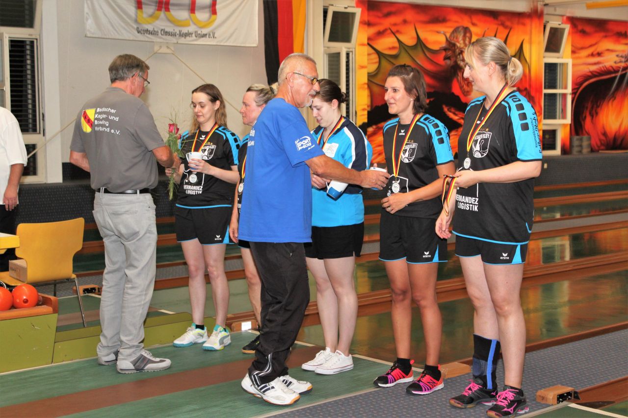 Da sich die Plankstädter Frauen 2019 als Deutscher Meister und Pokalsieger krönten, übernahm der im Pokal Zweitplatzierte Alt Heidelberg die Rolle des Gegenspielers… und machte Plankstadt das Leben recht schwer. Die Eröffnungspartie entschied Laura Emmerich (491) gegen Jessica Foos (451) für den „Vize“, während sich Luisa Ebert und Alina Weber (beide 480) im zweiten Gang egalisierten. In der dritten Partie konnte Stefanie Blach (487) auf Martina Raab (478) etwas verkürzen, so dass Plankstadt mit nur noch 31 Miesen auf die Zielgerade ging. Das Schlussduell sollte sich als Déjà vu entpuppen, da sich Sirikit Bühler und Alexandra Wechner gegenüber standen – wie im Pokalfinale, in dem Sirikit Bühler Plankstadt mit zehn Kegeln zum Titel führte. Alexandra Werchner verarbeitete die knappe Pokalniederlage in einem spannungsgeladenen Fight und hielt Bühler 501:480 in Schach. Damit trumpfte das erste Mal in der Geschichte des Supercups der Pokalvize über den Deutschen Meister.